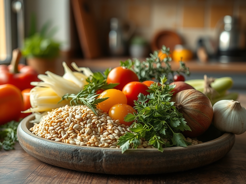 Vais precisar de 3 cebolas grandes cortadas em rodelas de 5mm, 4 dentes de alho laminados com um microplane ou faca de chef afiada, e pimentos (vermelho e amarelo) para aportar doçura e cor. As azeitonas pretas do tipo Galega, com o seu travo ligeiramente amargo e textura firme, são obrigatórias. Para finalizar, ovos cozidos e salsa fresca picada no momento para preservar os óleos essenciais voláteis.
